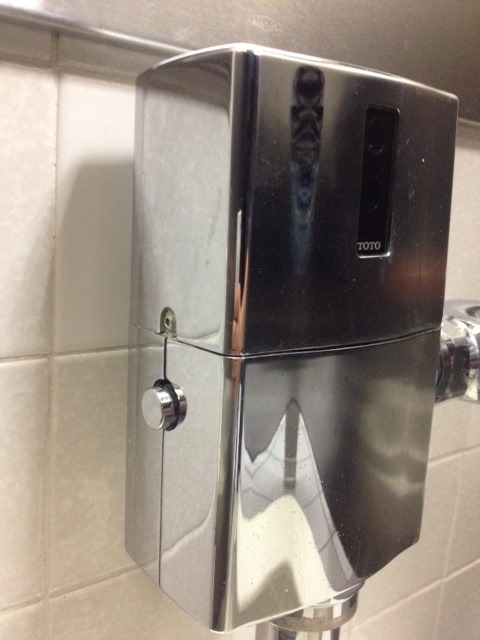 Amazing. Wonderful. Sanitary. See that button on the left? That flushes the old fashioned way. You need that. Because no matter how good the sensor is, how elegant your solution for activating the sensor, no matter how impeccably designed the sensor is, you are going to need that button. And when you need that button, boy, you really need that button.