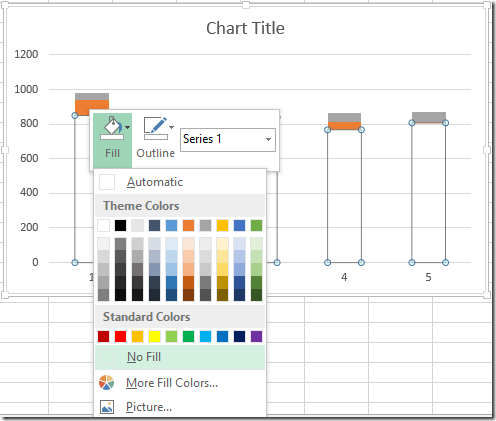 This is simple: the bottom bar (the blue ones in my example) need to go away. So right click on a blue bar and change both the outline and fill to nothing.