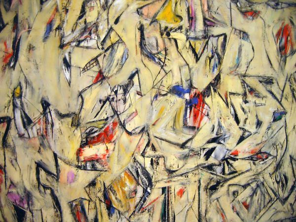 De Kooning applies certain artificial restrictions in this work, permitting other dimensions to run free. It is a kind of experiment.