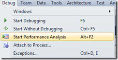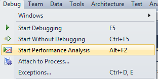 I am not dissing SAS – I just think I am spoiled. I am not a SAS developer by background. The past decade or so I have been doing my primary development on the .Net Framework using various versions of Visual Studio. Several editions of Visual Studio 2012 include a performance analysis feature that makes it dead simple to profile .Net code. You can access it from the Debug menu: