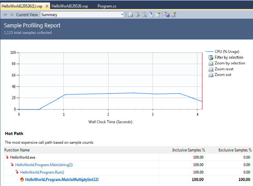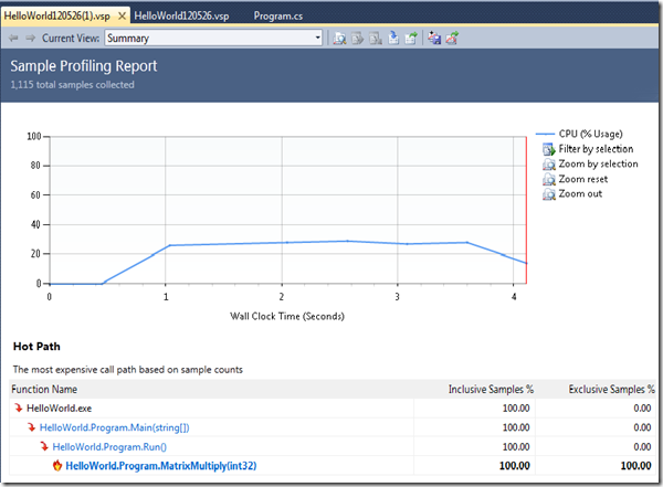A couple of clicks through a wizard, run your program, and you get all sorts of amazing information about the performance characteristics of the program: