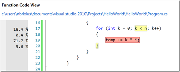 It even highlights which lines took the most time: